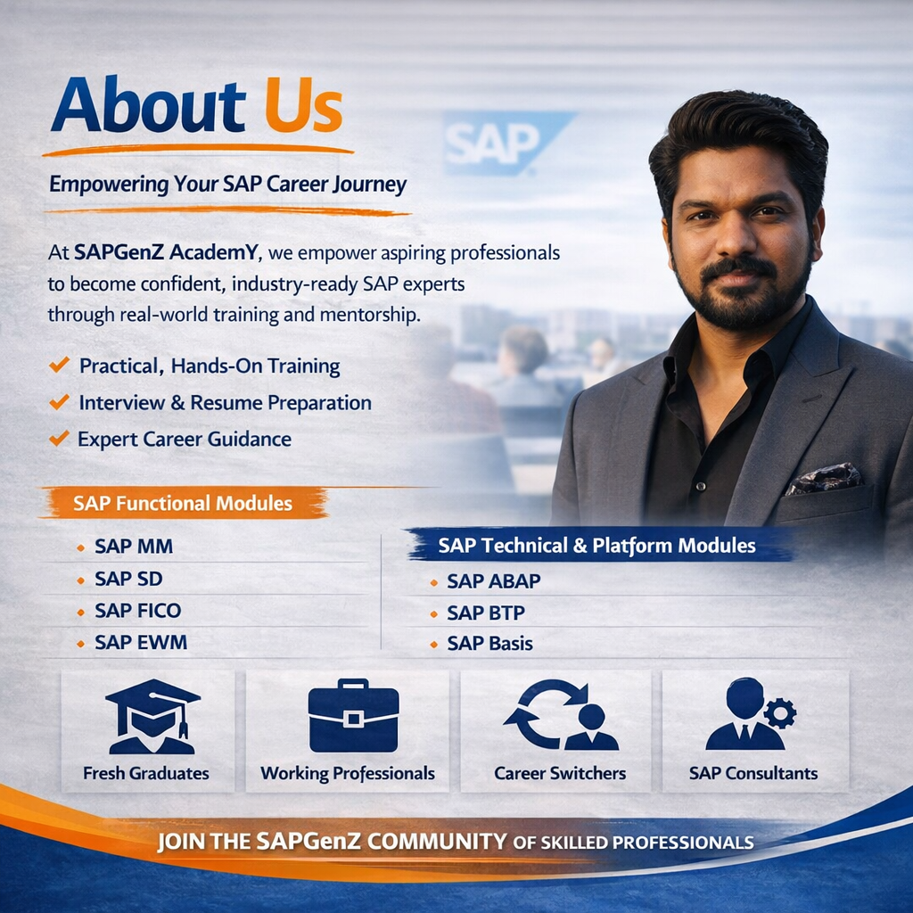 Founded by an experienced SAP professional with strong industry exposure and deep understanding of interview expectations, SAPGenZ AcademY focuses on practical implementation, real-time business scenarios, and structured interview preparation.